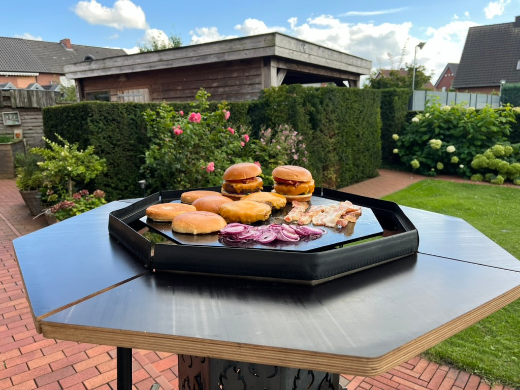 Die viergeteilte FlameBar fördert geselliges Beisammensein und flexibles Grillen. Sie kann als Stehtisch, Grill oder beides genutzt werden, um Ihre Outdoor-Events zu bereichern und vielseitige Möglichkeiten für gemeinsame Momente zu bieten.